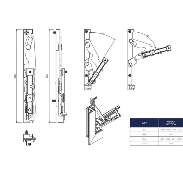 - anta larghezza max 1 m. Apertura 30°/75°
