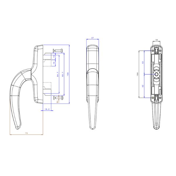- Corpo in alluminio pressofuso, molla e cremagliere in acciaio zincato, scorrevoli in zama, piastrina in nylon