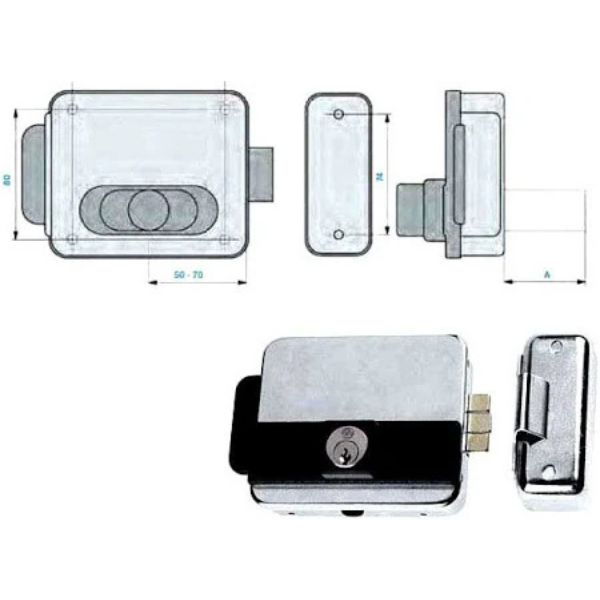 • Tipo di serratura : Serratura elettrica da applicare con cilindro fisso per cancelli