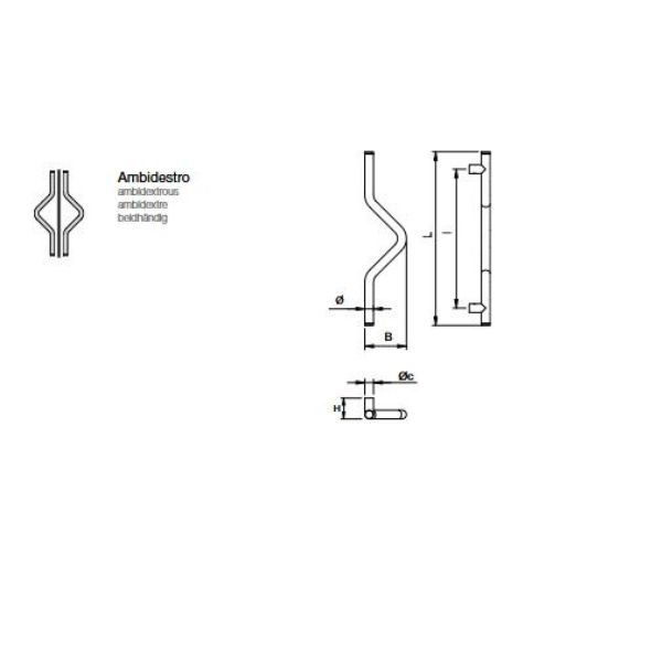 La particolare forma a “S” o a gomito (spesso definita maniglione disassato) serve a facilitare la presa. La curvatura permette di allontanare la mano dal bordo della porta, evitando che le nocche colpiscano il telaio o la serratura durante l’apertura o la chiusura.